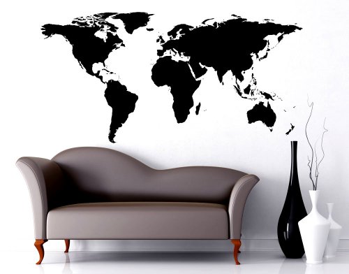 Description : Adesivo Murale Mappa Mondo Colore Nero dimensioni 200.00X100.00