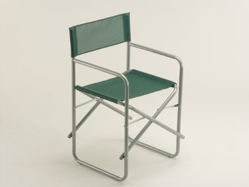 Description : Sedia da esterno modello regista, struttura in acciaio verniciato colore argento, tubo diametro 22 mm, tessuto in textilene colore verde. seduta pieghevole, made in Italy. L'acciaio e' verniciato con polveri epossidiche per garantirne la massima prestazione e durata nel tempo. Il tessuto texfilene composto da PVC e anima in Nylon. Resistente al carico, brillante nei colori.